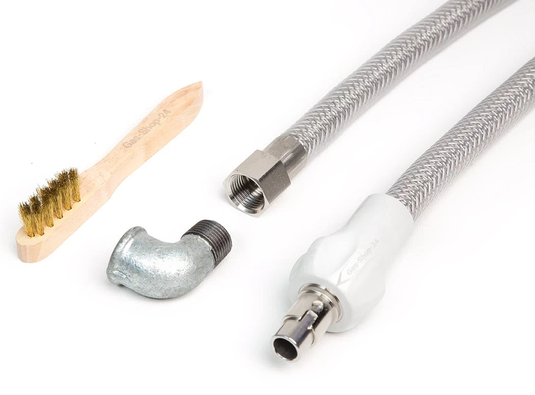 2 M Edelstahlschlauch / Edelstahl Gasschlauch + Winkel F. Gasanschluss + Reinigungsbürste (geeignet Für Flüssig- / Erdgas) – F. Gasherd,
