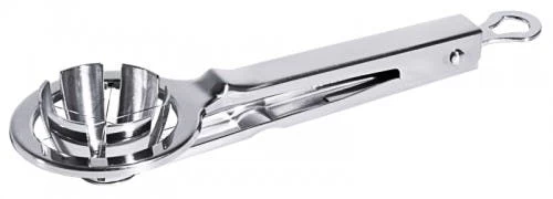 2x Apfel-/Zwiebelteiler aus Edelstahl 18/10, hochglänzend, Materialstärke: 1,2 mm, Klingen aus gehärtetem, geschärften Klingenstahl, geeignet für Früchte mit max. Ø 10 cm, spülmaschinengeeignet, extra schwere Qualität Durchmesser innen: 10 cm, Höhe: 5 cm, Länge: 19,5 cm