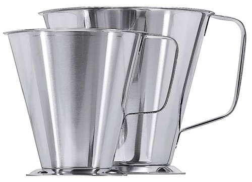 2x Maß mit Fuß aus Edelstahl 18/10, seidenglänzend poliert, innen graduiert, Maßeinheit: Liter und Pint, mittelschwere Qualität Volumen: 1 l, Höhe: 14 cm (Maßzahlen alle 500 ml)