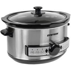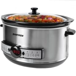 Syntrox Germany digitaler Slow Cooker 3,5 Liter mit Timer – ein Highlight in der Küche Im Online-Shop von Syntrox Germany werden Ihnen viele verschiedene Küchengeräte zum Verkauf angeboten. Möchten Sie auch endlich ordentliches Equipment in der Küche vorfinden, sollten Sie unbedingt in unserem gut sortierten Online-Shop vorbeischauen. Hier gibt es für Sie Multikocher, Slow Cooker, Küchenmaschinen, Einkochautomaten, Dunstabzugshauben und vieles mehr. In jede gut aufgestellte Küche gehören die unterschiedlichsten Produkte. Wie wäre es mit dem hier angebotenen digitalen Slow Cooker aus dem Hause Syntrox Germany mit Timer? Er hat ein Fassungsvermögen von 3,5 Liter, sodass Sie mit dem Gerät viele Köstlichkeiten und Leibspeisen herstellen können. Nutzen Sie den Edelstahl-Slowcooker mit dem 3,5 Liter Fassungsvermögen und Warmhaltefunktion, wird jede Leibspeise zum richtigen Genusserlebnis. Warten Sie nicht lange, sondern bestellen Sie sich mit wenigen Klicks den praktischen Slow Cooker mit dem 3,5 Liter Fassungsvermögen. Nach wenigen Tagen wird der Cooker aus Edelstahl mit Timer geliefert. Viele Köstlichkeiten mit dem Slow Cooker herstellen Ein Slow Cooker mit Warmhaltefunktion von Syntrox Germany ist perfekt dafür geeignet, viele verschiedene Köstlichkeiten für sich und die Familie herzustellen. Das Produkt ist multifunktionell und bietet Ihnen viele Möglichkeiten. Möchten Sie leckere Köstlichkeiten mit dem Schongarer herstellen, werden Sie von Genuss pur überrascht. Unter anderen können Sie die folgenden Besonderheiten zubereiten: Suppen Eintöpfe Ragouts Schmorgerichte Dieser Slowcooker besteht aus einem äußeren Teil aus Edelstahl mit Heizelement und einem Keramikinnentopf mit Glasdeckel, der optional auch bei Bedarf als formschöne Servierschüssel verwenden kann. Der Slow Cooker mit 3,5 Liter Fassungsvermögen ist außerdem mit rutschsicheren Standfüßen versehen, sodass ein sicherer Stand stets gewährleistet ist. Sie können die Garzeiten ganz nach Belieben frei wählen und einstellen. Außerdem können Sie die Speisen problemlos in dem Schongarer warmhalten. Das ist alles mit dem 200 Watt starken Cooker aus dem Hause Syntrox Germany möglich. Viele weitere Multikocher und Slow Cooker online bestellen Online können Sie so viele verschiedene Produkte im Bereich der Küchengeräte bestellen. Unter anderem finden Sie in unserem Store während Ihrer Shoppingtour neben dem praktischen Schongarer auch Multikocher, Mixer und verschiedene andere Küchengeräte vor. Sie könnten sich im Prinzip bei Bedarf komplett neu ausstatten, um letztendlich von vielen Vorteilen zu profitieren. Ob der Slow Cooker, der Multikocher oder ein anderes Gerät, alle lassen sich denkbar einfach bedienen. Falls Sie einmal nicht weiter wissen, schauen Sie einfach in der Bedienungsanleitung nach. Dort werden Ihnen alle wichtigen Infos offeriert. Vielleicht suchen Sie auch einen modernen und guten Wasserkocher oder Tellerwärmer, auch diese Produkte werden online von Syntrox Germany angeboten. Nehmen Sie sich einfach ein wenig Zeit und finden genau die Produkte, die Sie für Ihre Küche benötigen. Zudem gibt es auch verschiedene Beauty-Artikel und Artikel rund um das Grillen und den Haushalt. Ein Elektro-Grill, ein Hochdruckreiniger oder ein praktischer Staubsauger, wählen Sie einfach das gewünschte Produkt aus und schauen, ob es Ihnen zusagt, und bestellen mit wenigen Klicks online. Die Bestellung der exklusiven und modernen Technik gestaltet sich denkbar einfach und schnell. Auch die Lieferung wird rasch realisiert. Meistens können Sie schon nach 1 bis 3 Werktagen die Lieferung des Slow Cookers mit Warmhaltefunktion oder anderer Geräte in Empfang nehmen. Eigenschaften: Farbe: Edelstahl maximaler Stromverbrauch: 200 Watt Garzeit frei wählbar Warmhaltefunktion Glasdeckel 3,5 Liter Fassungsvermögen Keramik-Innentopf, auch als formschöne Servierschüssel verwendbar rutschsichere Standfüsse Bedienungsanleitung (de/en) mit Rezeptvorschlägen deutscher Stecker Gewicht: ca. 4kg Verpackungs