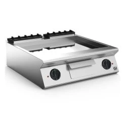 Gastro-Inox 700 “High Performance” Gas-Grillplatte. Die Grillplatte sind für Erdgas geeignet. Die Grillplatte sind in verschiedenen Oberflächenausführungen erhältlich, d.h. Edelstahl, Edelstahl und verchromt, aber auch glatt, komplett gerippt oder 2/3 glatt und 1/3 gerippt. Alle Grillplatte haben eine kurze Aufheizzeit, Piezozündung, eingebaute Auffangwanne, thermostatisch pro Zone einstellbar, thermostatisches Sicherheitsventil und sind leicht zu reinigen
