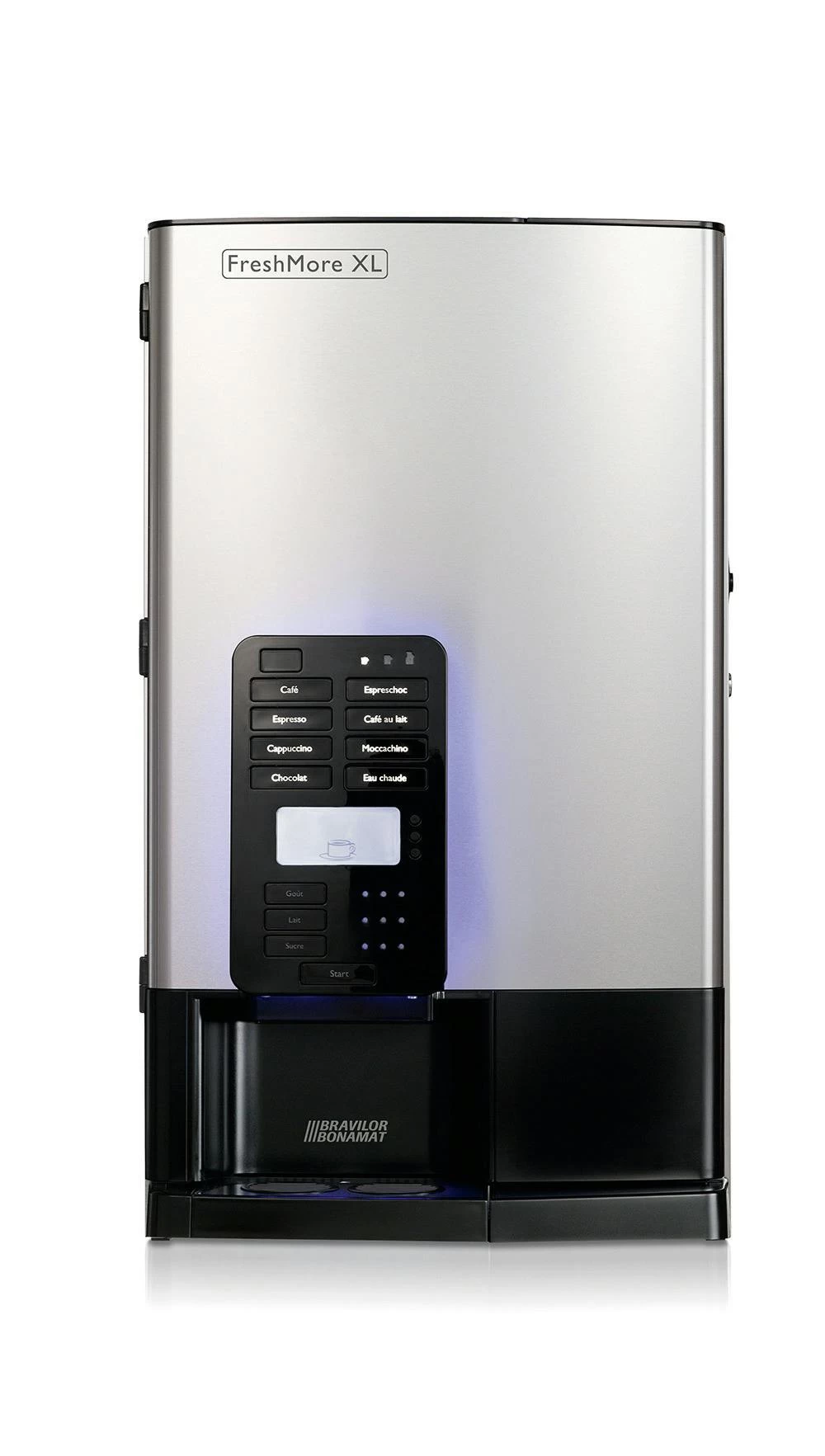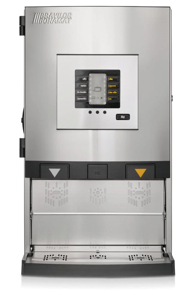 Bravilor Bonamat Heißgetränkezubereiter Quinto 322 > für Instantzutaten > mit Wasseranschluss > ausgestattet mit 3 herausnehmbaren Produktbehältern, Digitaldisplay, Kunststofftropfblech, Reinigungs- und Entkalkungsprogramm > Ausführung mit 3 Produktbehäl