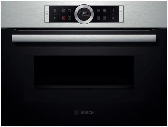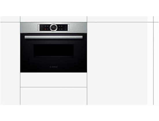 Bosch CMG633BS1. Mikrowelle Energie: 1000 W. Produktfarbe: Edelstahl, Steuerung: Berührung, Display-Typ: TFT. Uhrtyp: Elektronisch. Anschlusswert: 3650 W, AC Eingangsspannung: 220-240 V, AC Eingangsfrequenz: 50 – 60 Hz. Breite: 595 mm, Tiefe: 548 mm, Höhe: 455 mm