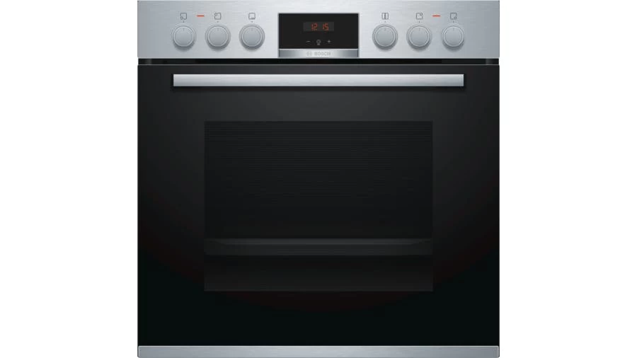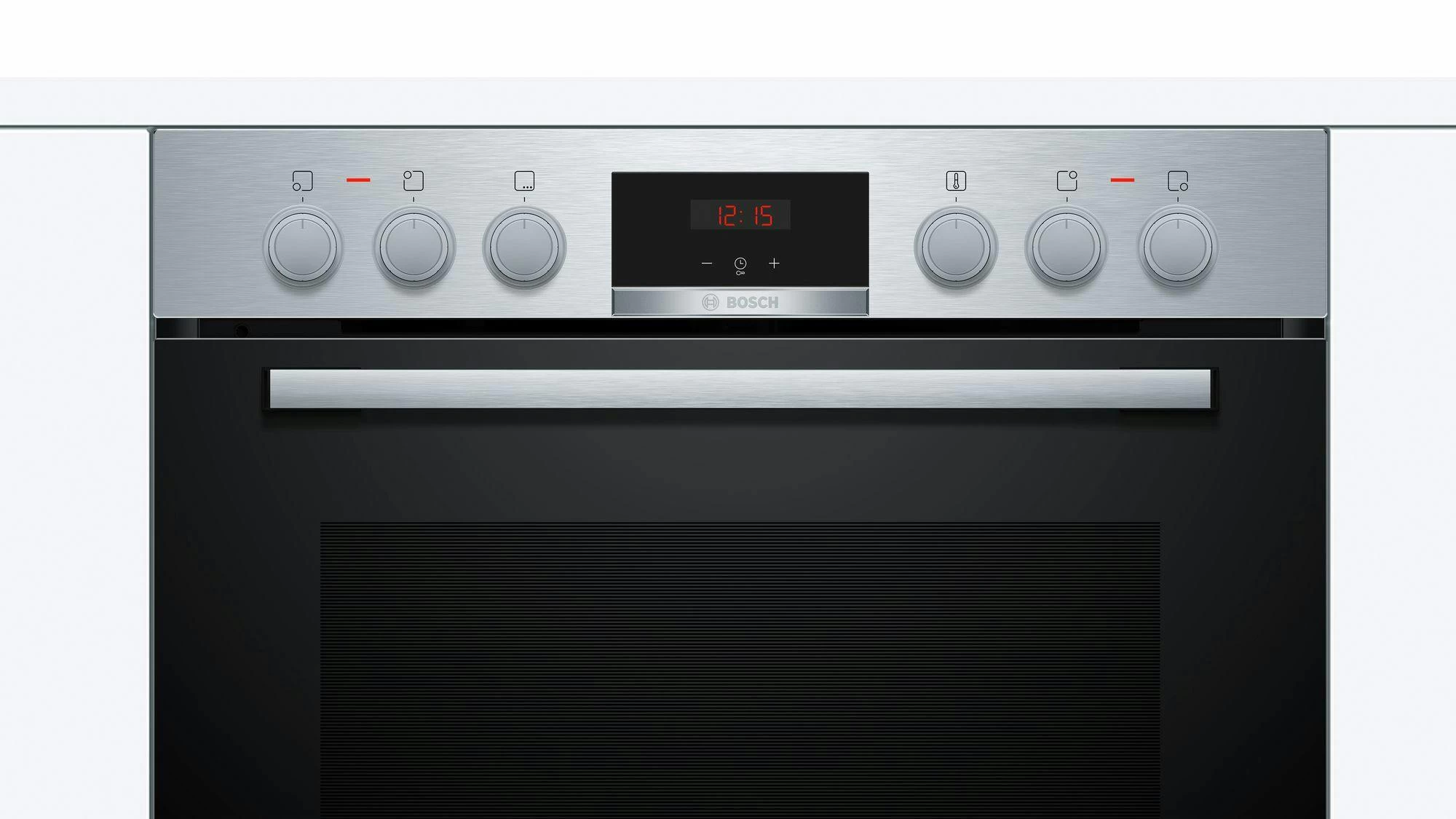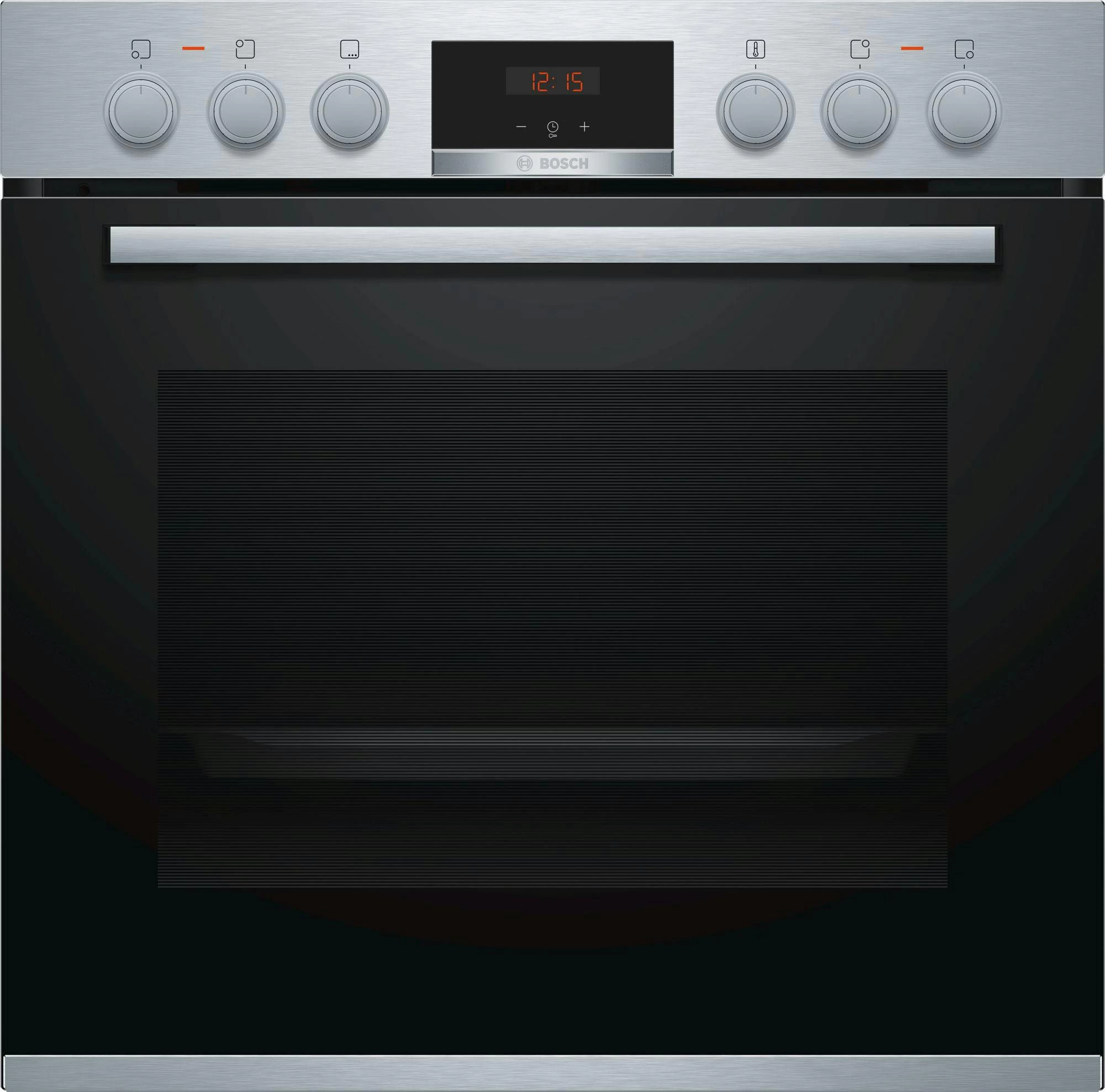 Bosch HND411LS61. Kochfeldtyp: Keramik, Anzahl Herdplatten/Kochzonen: 4 Zone(n), Art der Oberfläche: Glaskeramik. Ofentyp: Elektrischer Ofen, Netto-Ofenvolumen: 71 l, Ofenfarbe: Edelstahl