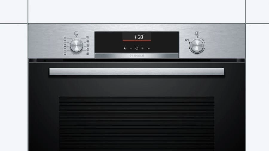 Bosch Serie 6 HBA5360S0. Ofengröße: Medium, Ofentyp: Elektrischer Ofen, Garraumvolumen Gesamteinheit: 71 l. Geräteplatzierung: Integriert, Produktfarbe: Edelstahl, Steuerung: Drehregler, Berührung. Uhrtyp: Elektronisch, Timer-Typ: Digital, Timer-Modi: Stoppuhr, Timer. Energieeffizienzklasse: A, Energieverbrauch (konventionell): 0,97 kWh, Energieverbrauch (erzwungene Konvektion): 0,81 kWh. Anzahl Lampe(n): 1 Lampen