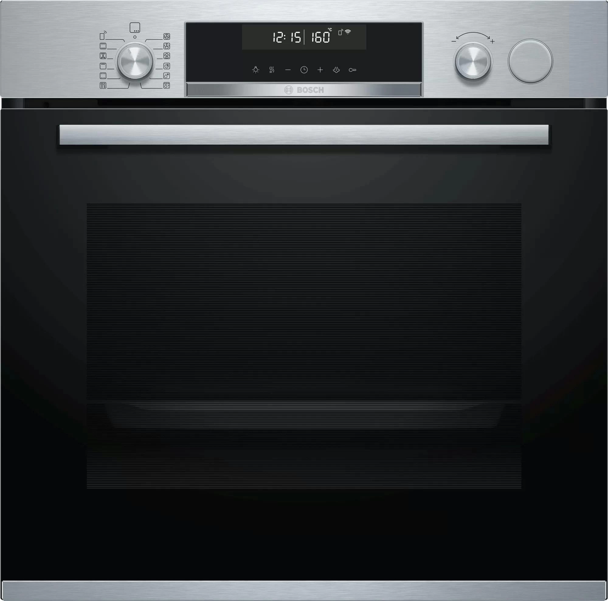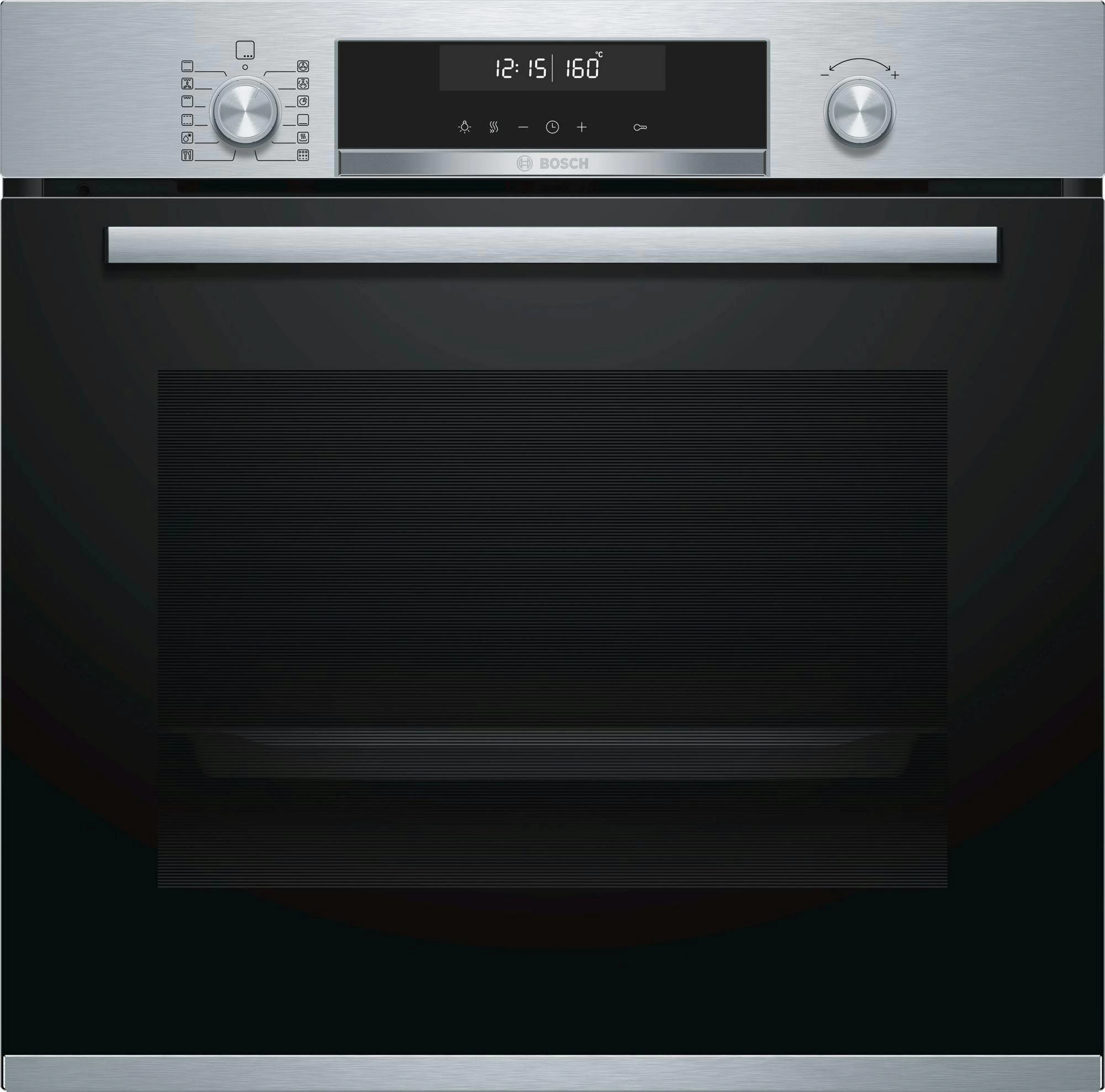Bosch Serie 6 VBC5580S0. Ofengröße: Medium, Ofentyp: Elektrischer Ofen, Garraumvolumen Gesamteinheit: 85 l. Geräteplatzierung: Integriert, Produktfarbe: Edelstahl, Steuerung: Drehregler, Berührung. Uhrtyp: Elektronisch. Energieeffizienzklasse: A+, Energieverbrauch (konventionell): 0,74 kWh, Energieverbrauch (erzwungene Konvektion): 1,11 kWh. Anzahl Lampe(n): 2 Lampen, Lampentyp: Halogen
