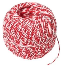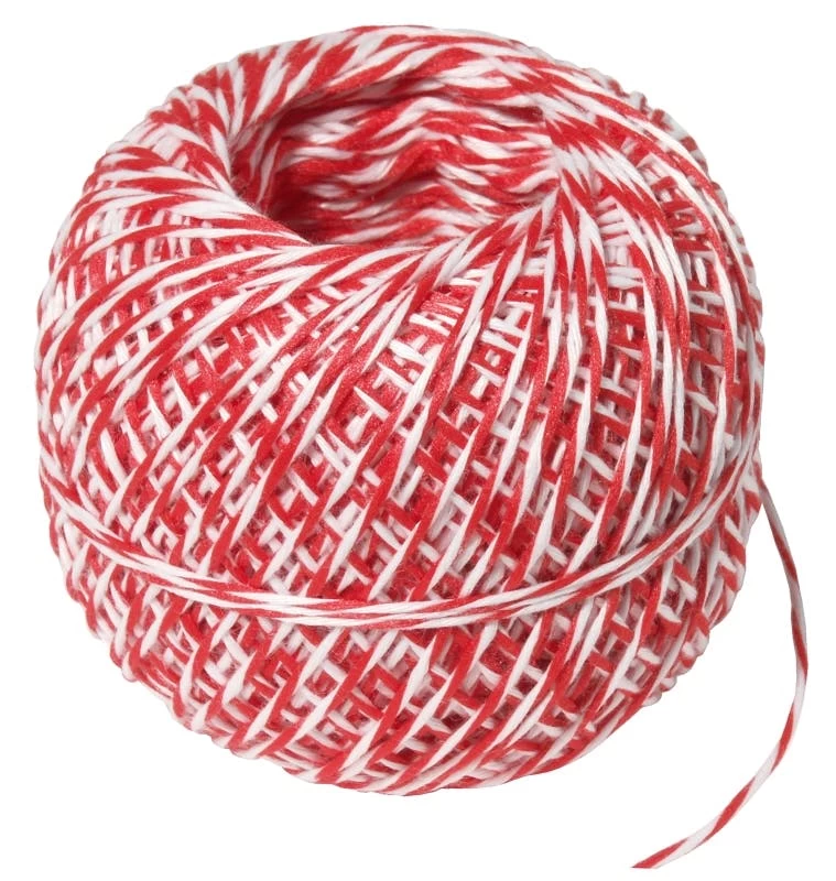 Rollbratenfaden als Nachfüllrolle ohne Dose, aus rot-weißem Polyester, in wiederverwendbarer Spenderdose