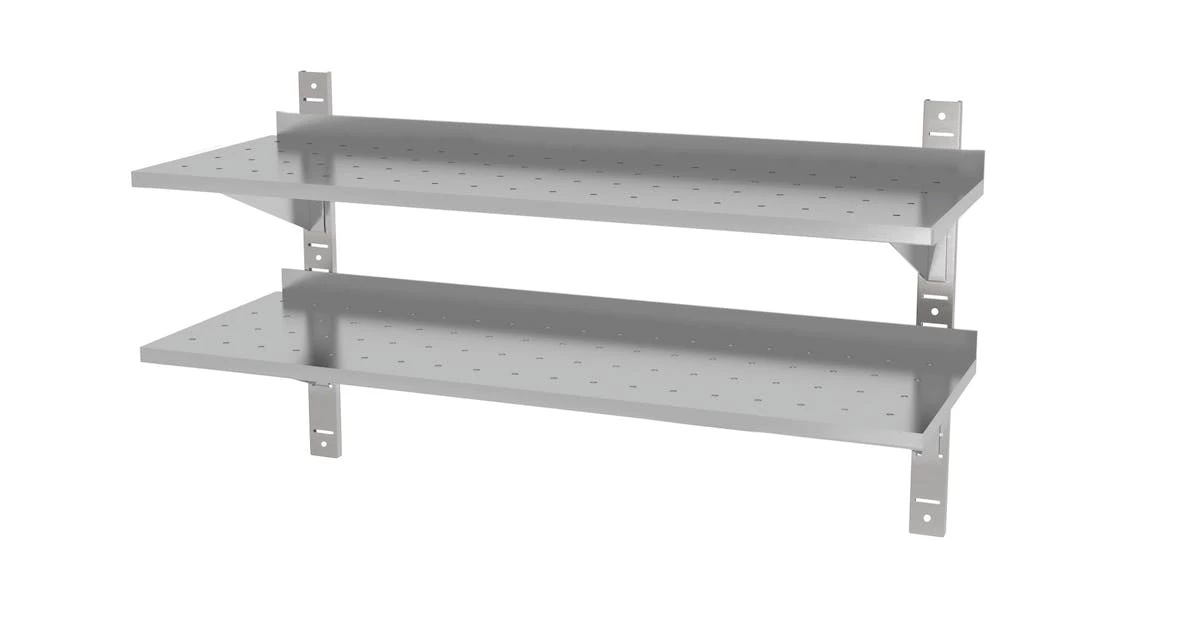 Das Gastro-Wandboard mit 1 perforierten (verstellbaren) Ablagefach wird aus rostbeständigem Stahl AISI 430 hergestellt und erfüllt alle erforderlichen funktionellen Anforderungen der professionellen Gastronomie. Das Wandregal wird mit Aufhängeösen geliefert, die für eine einfache Montage an der Wand sorgen. Ausreichend Kapazität bzw. Stauraum erzeugt das Ablagefach. Erhältlich ist das Wandboard in mehreren Größen, die sich jeweils in der Tiefe und Breite unterscheiden.