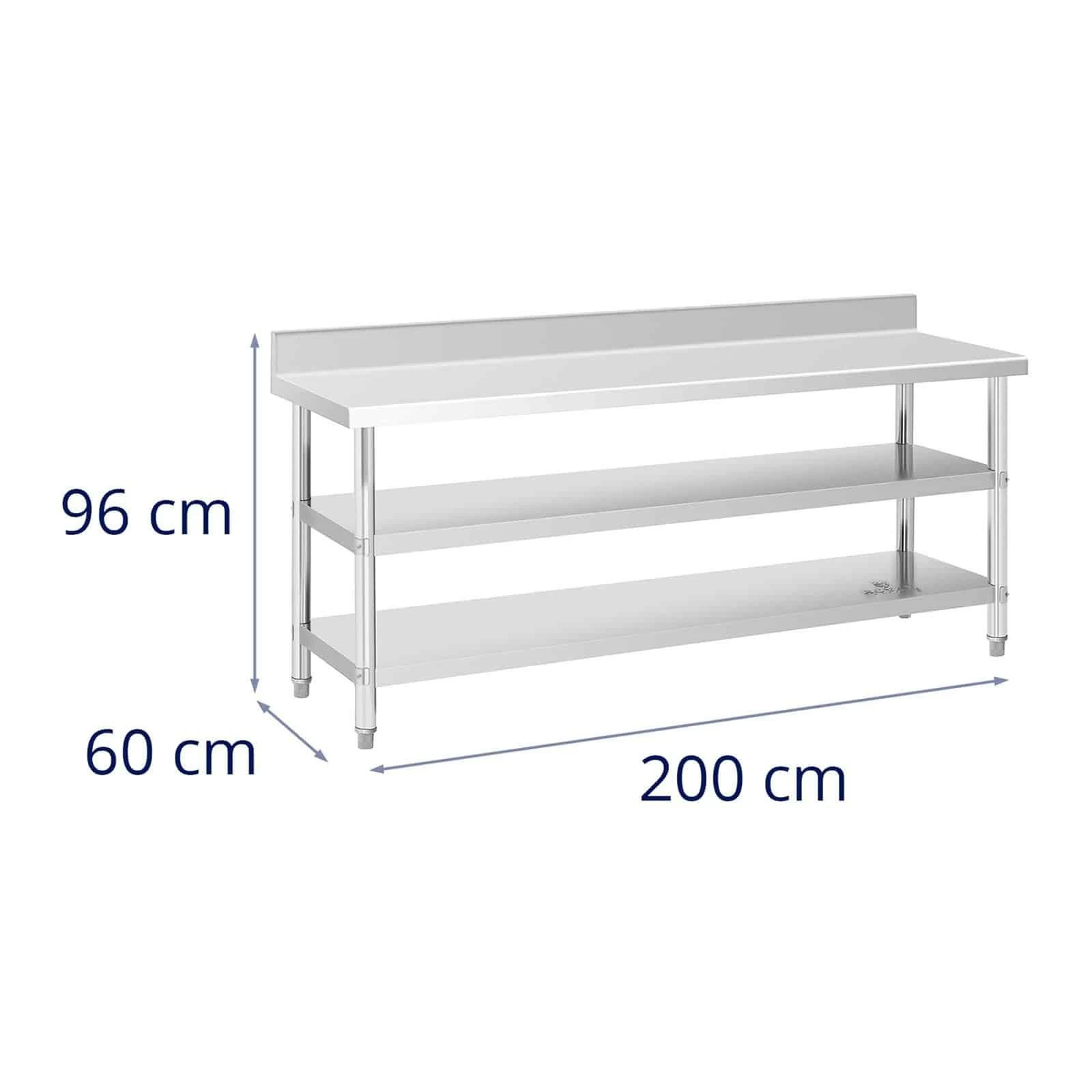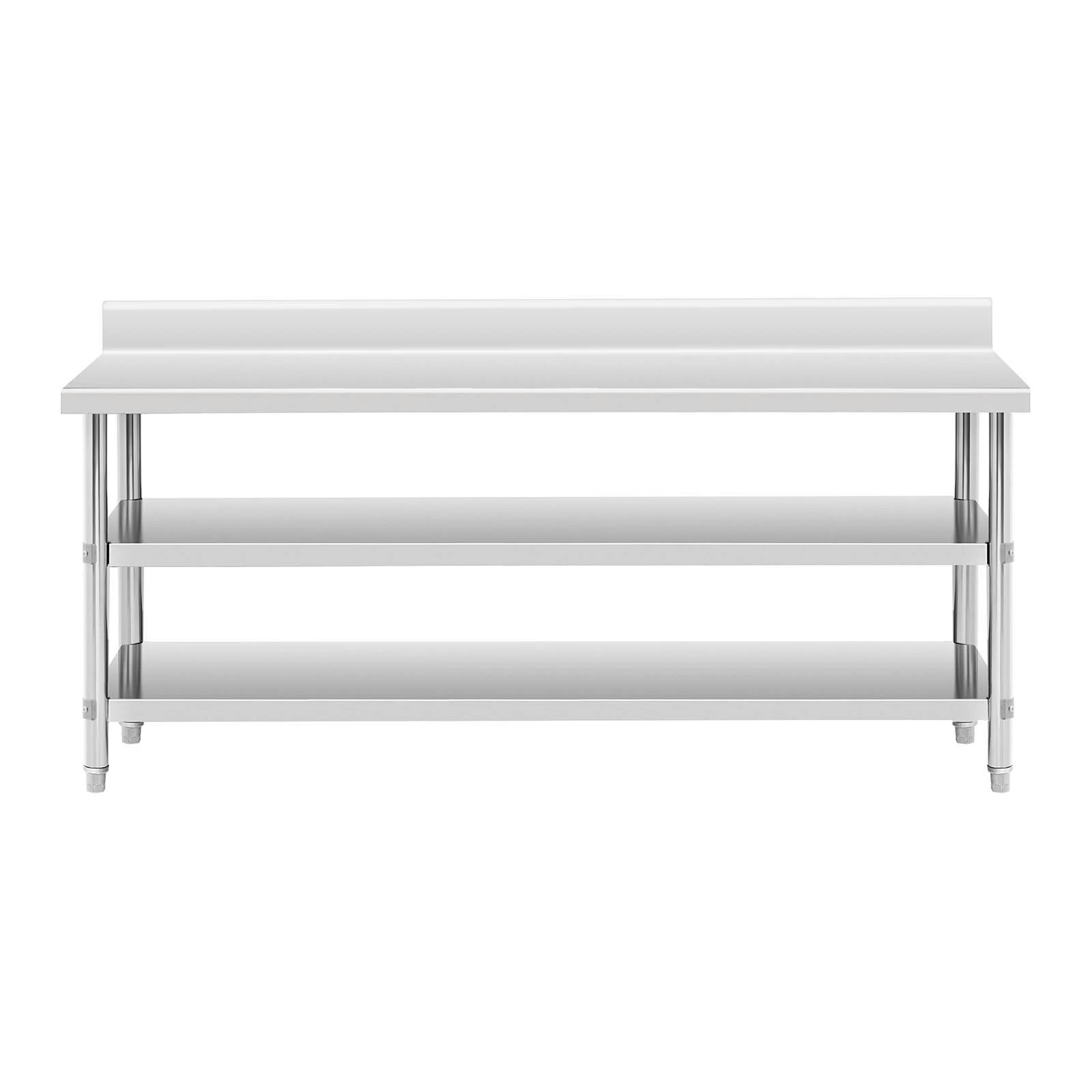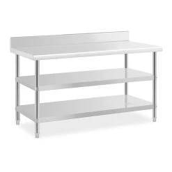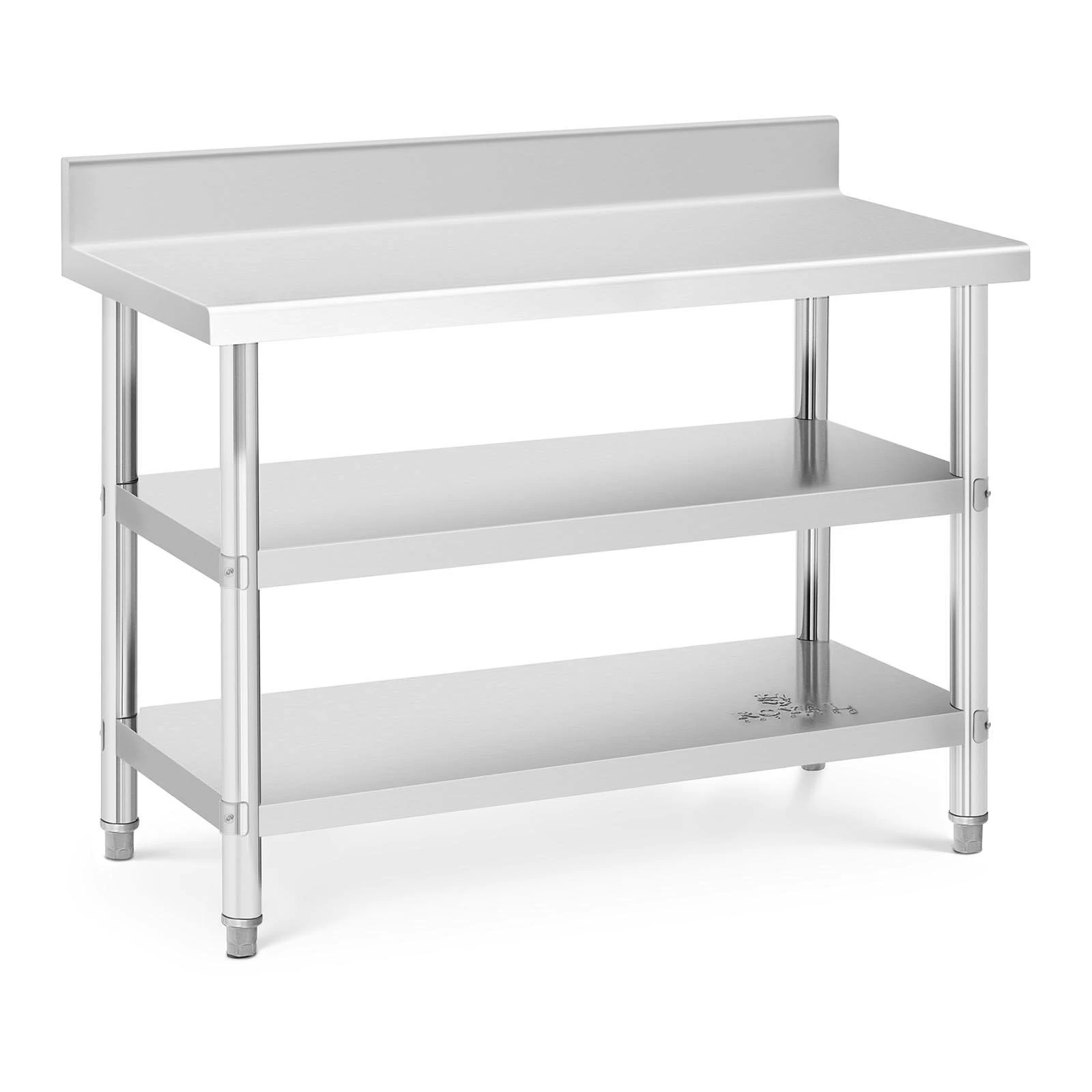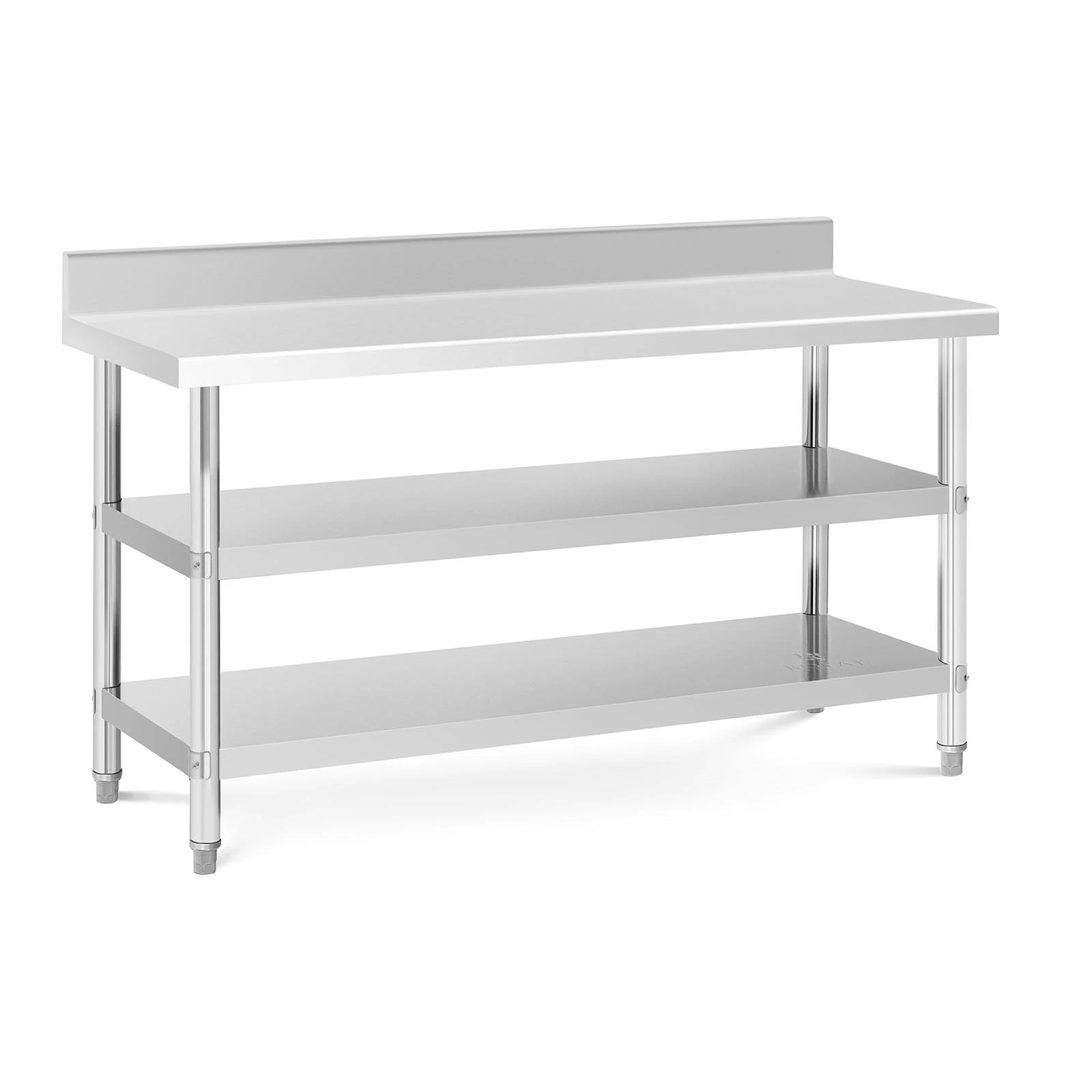 Edelstahlmöbel sind die Grundlage für eine hygienische Küche und die saubere Herstellung von Lebensmitteln aller Art. Der Edelstahltisch aus dem Gastronomiebedarf von Royal Catering passt in jede professionell eingerichtete Küche. Er wurde speziell für die hohen Anforderungen in der Gastronomie entworfen und bietet durch sein dreistufiges Design zusätzliche Ablagefläche. belastbar geräumig – große Arbeitsfläche sowie 2 praktische Ablagen Edelstahl – hygienisch, langlebig und pflegeleicht stabil – sicherer Stand durch höhenverstellbare Füße sauber – mit 115 hohem Spritzschutz