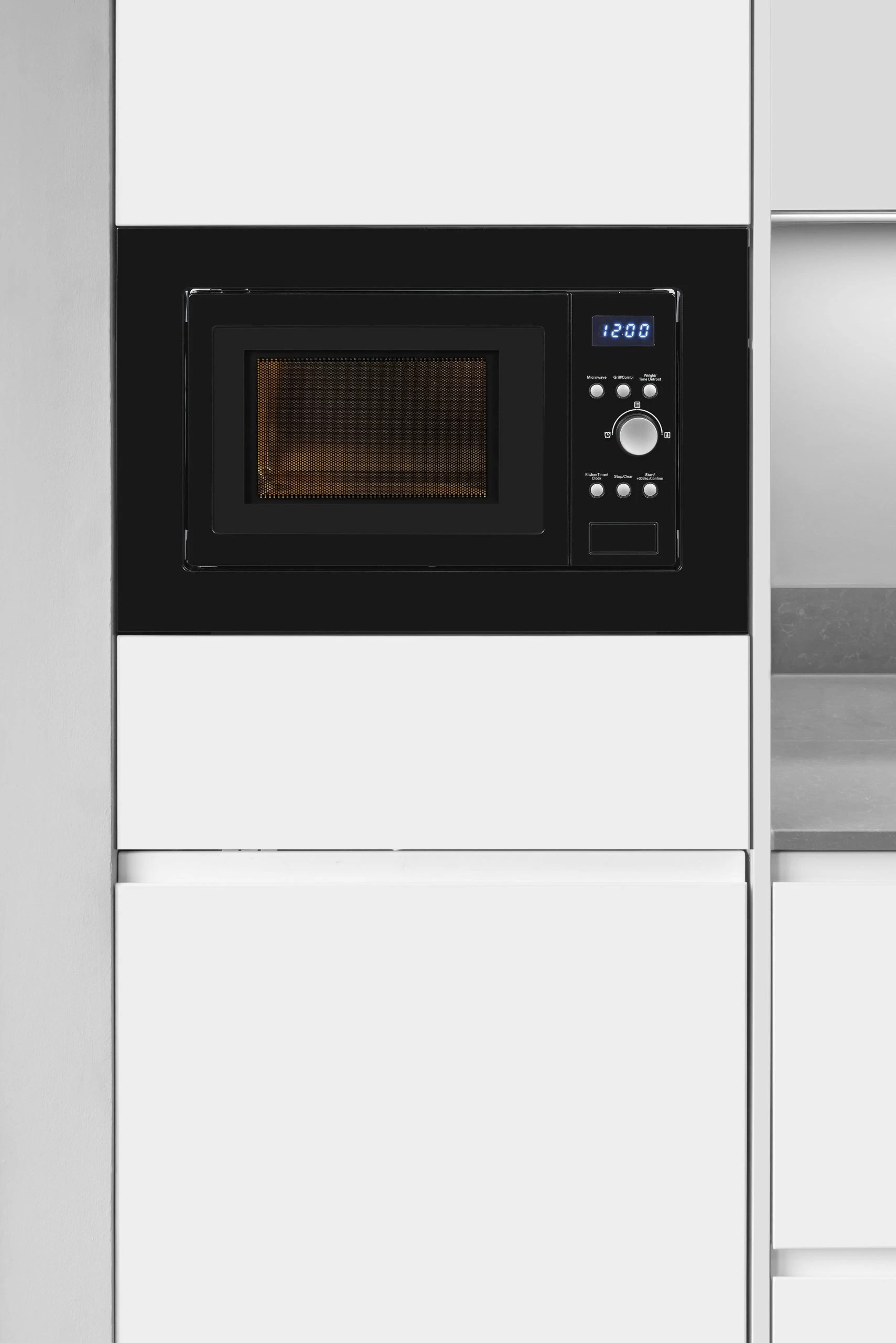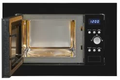 Die EMW 1770-G-D-030 schwarz ist eine Einbau-Mikrowelle der Marke Exquisit und begeistert mit vielfältigen Funktionen. Sie besitzt eine Front in der Farbe Schwarz und hat einen Garraum von 17 Liter. Als Einbau-Mikrowelle fügt sie sich optimal in ihre vorhandene Küchenfront ein und vervollständigt Ihre bisherige Küchenausstattung. Das Gerät hat die Abmessungen 38,1 x 59,5 x 33,5 cm (Höhe/Breite/Tiefe). Die Gesamtleistung von 1050 W ist eingeteilt in 5 Stufen und bietet Ihnen maximale Flexibilität in der Zubereitung und beim Aufwärmen Ihrer Lebensmittel. Die Grillfunktion sorgt mit maximal 1000 W dafür, dass Ihre Speisen knusprig und kross werden. Hierdurch wird das Aufbacken oder Bräunen von Speisen zum Kinderspiel. Die Mikrowelle besitzt wie erwartet einen Timer (digital). Mit diesem behalten Sie die Restzeit Ihres Programmes immer im Blick. Problemloses Ein- und Ausräumen gewährleistet Ihnen die integrierte Innenbeleuchtung der Mikrowelle. Wenn Sie eine verlässliche und leistungsstarke Mikrowelle suchen, ist die EMW 1770-G-D-030 schwarz von Exquisit genau richtig für Sie.