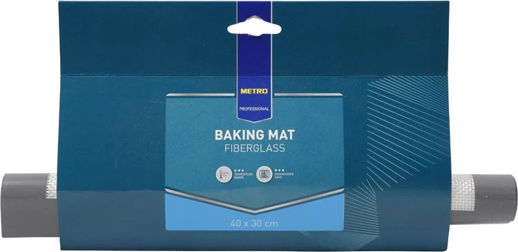 Die Backmatte von METRO Professional besteht aus Fiberglas und Silikon und hat die Maße 40 x 30 cmm (B x H). Temperaturbereich: -60 – 230 °C. Das Produkt ist ofenfest und spüulmaschinengeeignet.