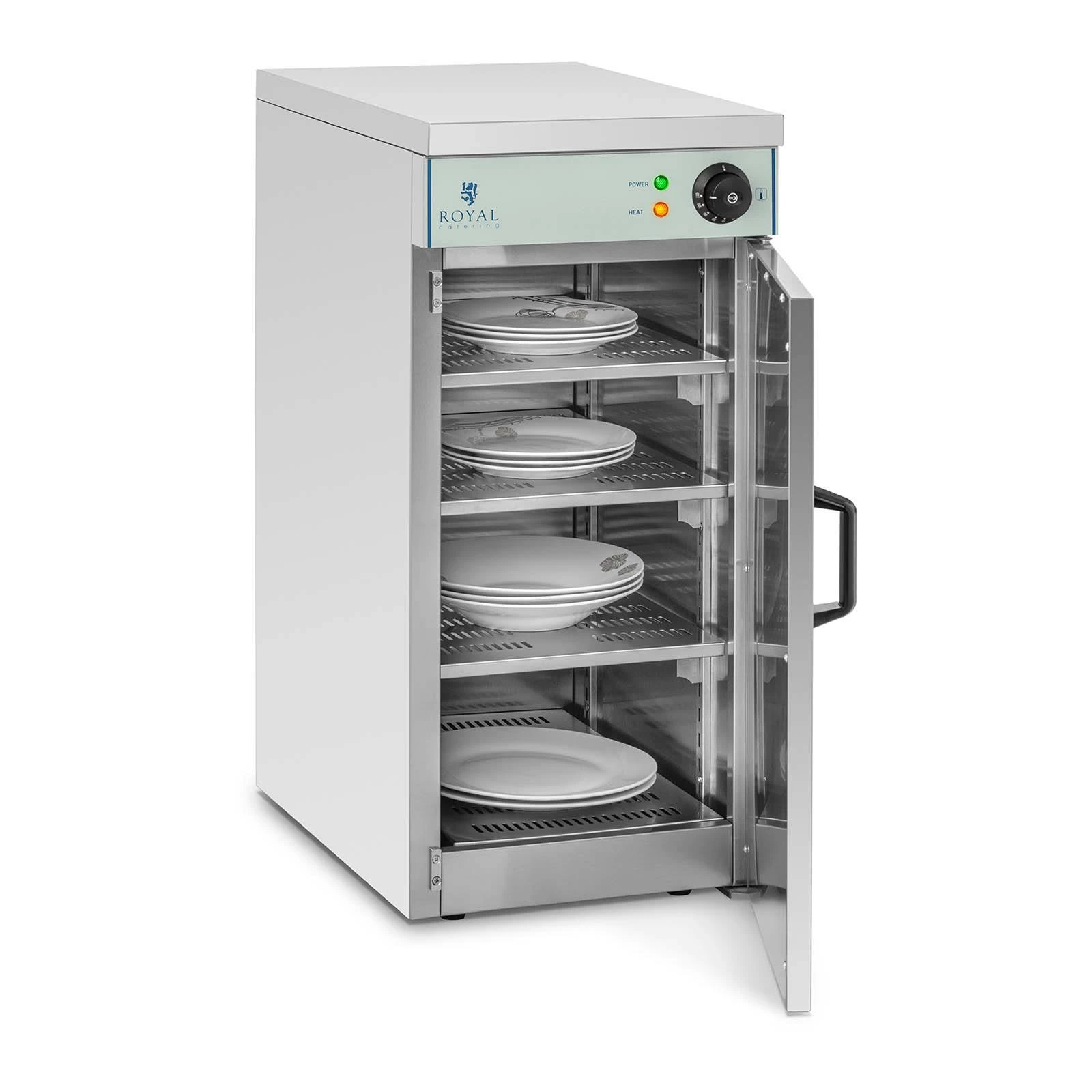 Tellerwärmer für 60 Stück Kalte Teller sorgen dafür, dass Speisen an Wärme verlieren. Der Tellerwärmer RCWS-30 von Royal Catering schafft hier Abhilfe. Sie können Ihr Geschirr schnell sowie einfach vorwärmen und sorgen so dafür, dass Ihre Speisen nach dem Servieren nicht sofort abkühlen. Die Verzögerung des Abkühlprozesses garantiert Ihren Gästen nicht nur ein perfekt temperiertes Gericht, sondern vermeidet auch Hektik in der Küche. Der Tellerwärmeschrank lässt sich ideal in den laufenden Servierbetrieb integrieren und eignet sich hervorragend für die Gastronomieküche oder am Buffet. Mehr darf Qualität nicht kosten – hochwertiger Gastronomiebedarf zum kleinen Preis!