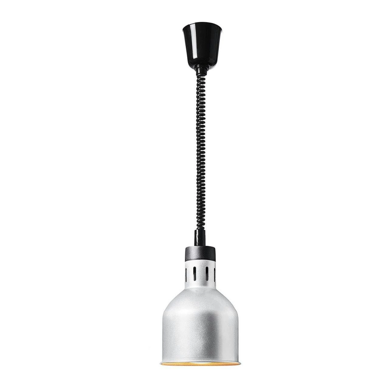 Perfekter Mix aus Funktion und Design: hängende Wärmelampe aus StahlMit der Wärmelampe RC-SHSFL03 von Royal Catering halten Sie Speisen aller Art zuverlässig warm und setzen bei Buffets elegante Akzente. Aufgrund seines edlen Designs eignet sich der Wärmestrahler besonders für den Einsatz in Gastronomie- und Cateringbetrieben mit Publikumsverkehr. Ob bei Buffets oder auf festlichen Anlässen wie Hochzeiten oder Firmenfeiern – die kompakte Wärmelampe in Silber-Optik setzt Ihr Speisenangebot professionell in Szene.Die Warmhaltelampe ist mit einer Fassung für E27 (max. 250 W)-Glühbirnen versehen. Dadurch hält die leistungsstarke Buffet-Wärmelampe Speisen und Geschirr über Stunden warm. Das erspart Ihnen ein erneutes Aufwärmen der Gerichte und lässt Ihre Gäste in den Genuss der frisch angerichteten Speisen kommen, auch nach längerem Warmhalten. Hinweis: Die Heizleistung variiert je nach Abstand zwischen der Speise und der Wärmelampe. Auf diese Weise können Sie die gewünschte Temperatur für unterschiedliche Speisen individuell anpassen. Das Kabel lässt sich nach dem Aufhängen der Lampe bequem zwischen 40 – 170 mm in der Länge justieren. Royal Catering setzt bei seinen Wärmestrahlern auf ein zeitloses, elegantes Design und ermöglicht Ihnen damit eine attraktive Präsentation Ihrer Speisen. Die Kombination aus Funktionalität und formschönem Design macht die Wärmelampe Gastro zu einem Muss für jedes Buffet. Technische DetailsSpannung: 230 VAnzahl Glühbirnen: 1Glühbirne: E27 (max. 250 W) Leistung: 250 WStromkabel: 0,4 – 1,7 mMaterial Gehäuse: StahlHöhenverstellung: 40 – 170 mmLieferumfangWärmelampe RC-SHSFL03, Bedienungsanleitung