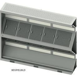 - die Längsseiten der Haube sind mit Luftschlitzen ausgestattet, um Ab- und Zuluft in den Raum zu kompensieren