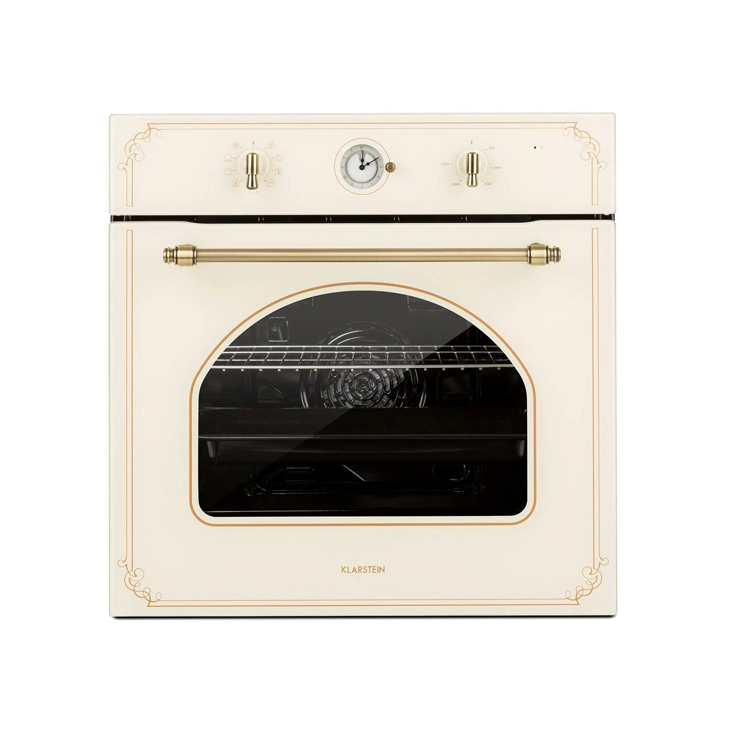 Mit seinem klassisch-schönen Design und den bronzefarbenen Elementen setzt der Victoria Elektrobackofen von Klarstein edle Akzente im Retro-Stil und ist ein echter Blickfang in jeder Küche.
